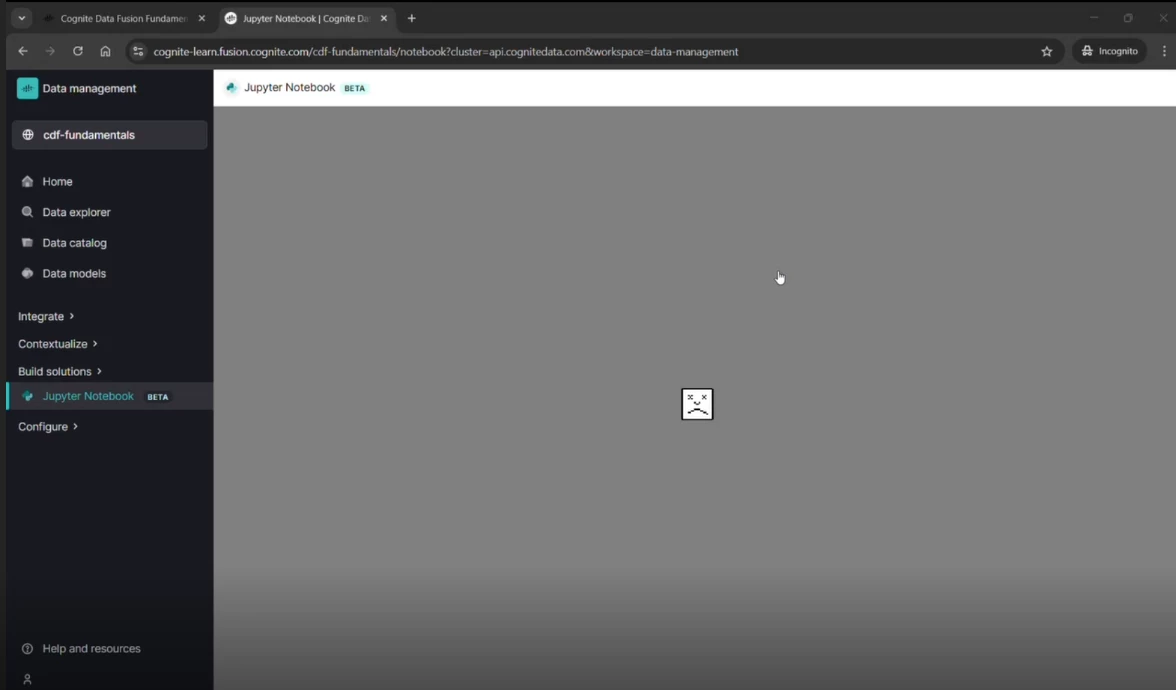 I’m unable to launch or use the Jupyter Notebook environment on the Cognite Data Fusion (CDF) platform. The notebook either fails to start, gets stuck while loading, or does not open at all. I have tried refreshing, restarting the session, and switching browsers, but the issue persists.
