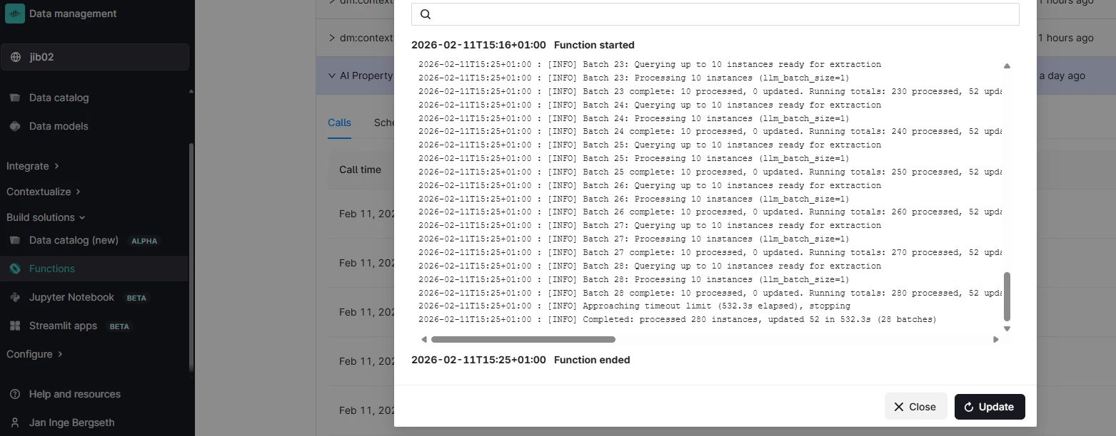 Verify your AI extraction in the Function log: