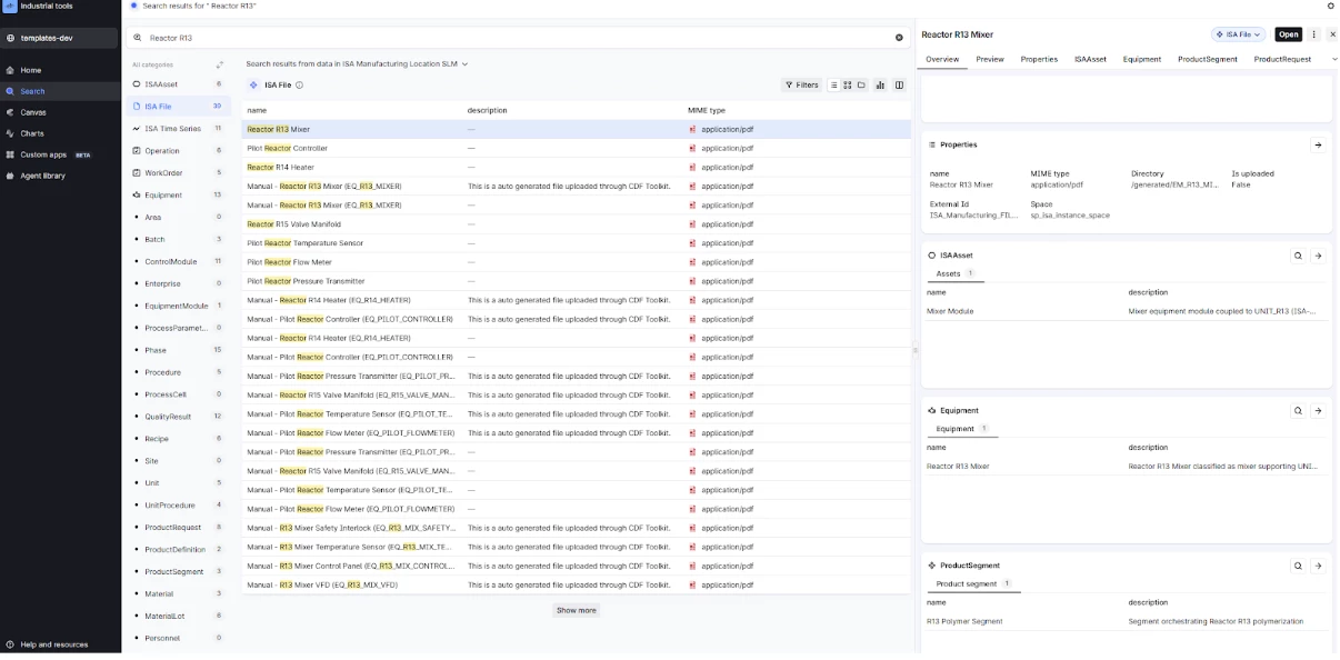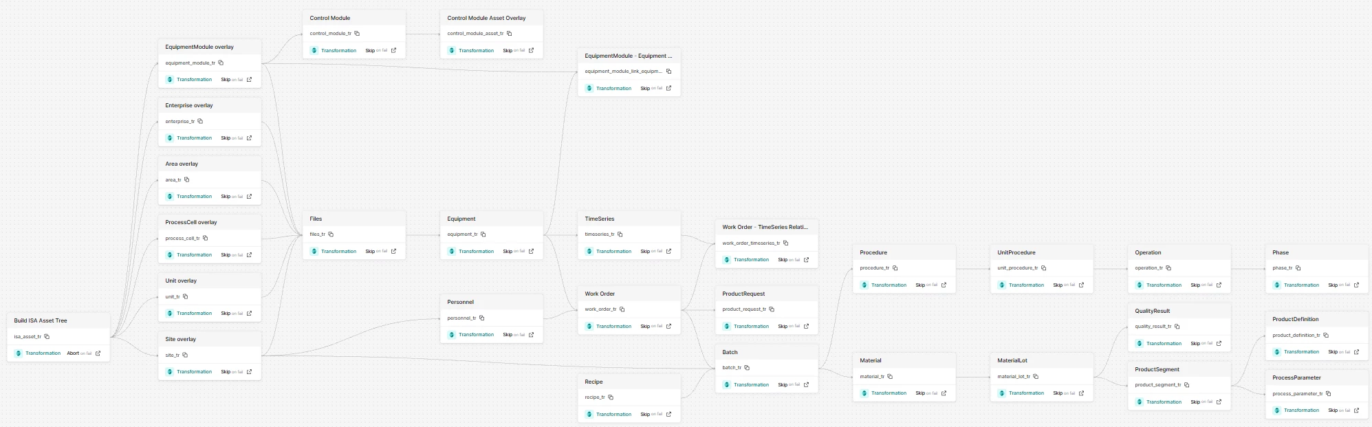 This deployment pack provides an ISA-95/ISA-88 based manufacturing domain model for Cognite Data Fusion (CDF). It defines spaces, containers, views, and a composed data model, along with optional RAW seed data, SQL transformations, and a workflow to orchestrate data loading. The model is not 100% complete for any customers, but contains place holders and structures where project can add properties add & remove views as required by customer.