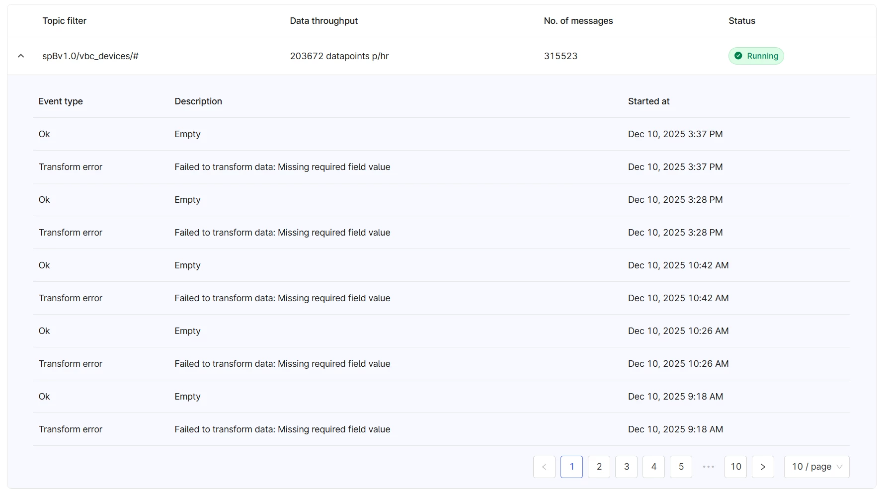 We’ve setup an MQTT Hosted Extractor that is recieving a SparkPlug B payload which some times contains a couple of null values, this values cannot be removed from the SparkPlug B payload. We believe that whenever the message contains null values the transformation for the datapoints fails.