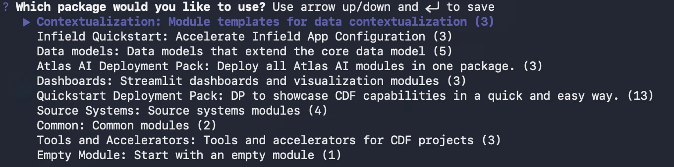 Hi ​@SunWei 0.7.236, the version of toolkit you’re running was released today, 4/10/2026. The toolkit version referenced in our training is 0.7.49, which was released in January. I would expect the menu choices to be different between versions. The Cognite toolkit can be tracked here for https://pypi.org/project/cognite-toolkit/ for version updates and documentation.