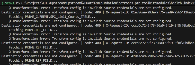 ✗ Transformation Error: Transform config is invalid: Source credentials are not configured.