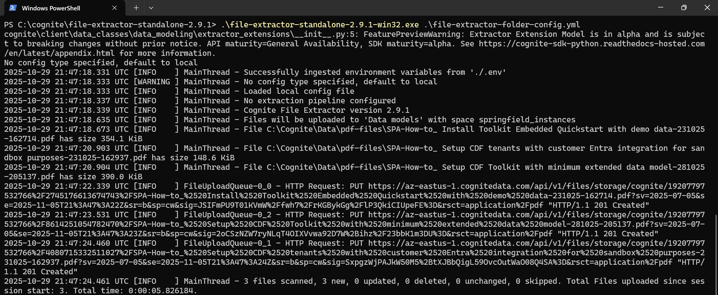 Getting started with setting up the CDF File Extractor on Windows to upload files from a local folder into Cognite Data Fusion (CDF) as CogniteFile objects in the Core Data Model.