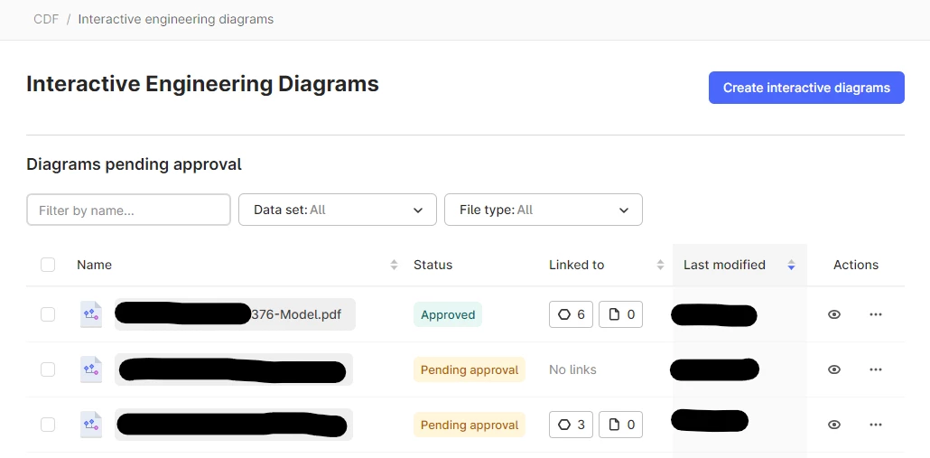 On the ‘Interactive Engineering Diagrams’ page in the Cognite web UI we can see the list of diagrams pending approval. It would be nice to see the list of approved diagrams too, and to be able to filter for approved vs. pending.