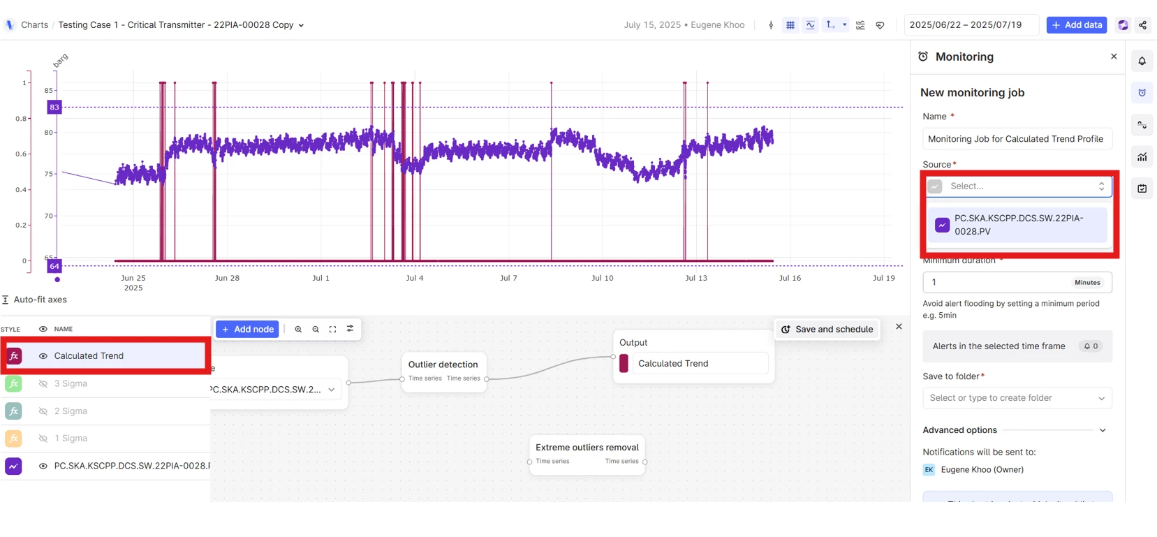 Please consider adding monitoring / alerting functionality to calculations inside of charts.