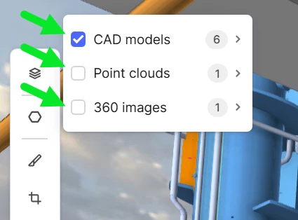 Need the ability for admins to configure the default on/off state for all 3D resource types (CAD, Point Cloud, 360 pano). This setting should be persistent for all users. For most of our intended use-cases and personas, all three should be ON by default.