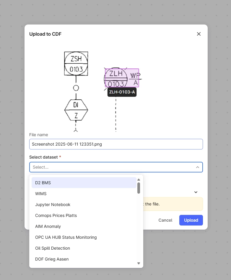 In general end users of CDF at us will not have access to upload files manually to most of our data sets in production due to governance. Which is why we’ve set up a dedicated data set for this purpose. So we think a better solution would be if this list showed all the data sets that the user could actually upload to (all data sets the user has write access to) rather than all the data sets that will produce an error.