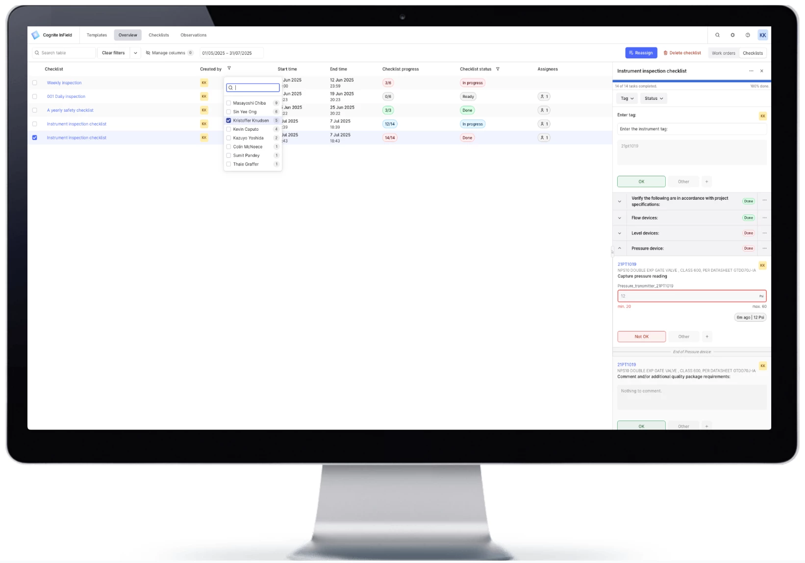 With Cognite InField, Templates can be scheduled to automatically generate Checklists for whenever works needs to be done in the field. For anything that needs to be done every shift, daily, weekly, monthly or yearly, scheduling removes the need for spending time on manual Checklist creation.
