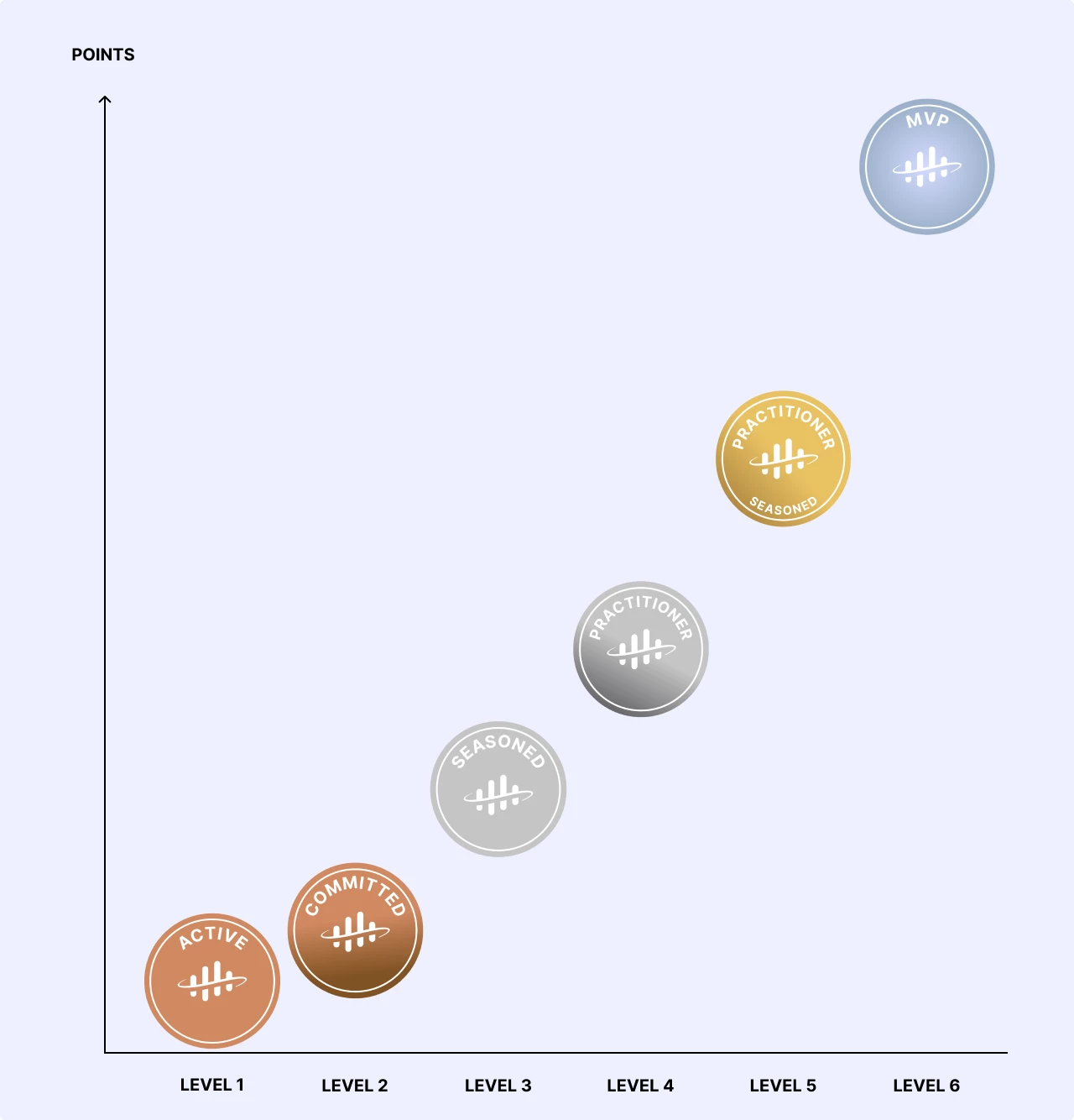 • Community Levels: Earn points with every interaction to progress through levels like Active, Seasoned, and Practitioner, with MVP as the ultimate goal.