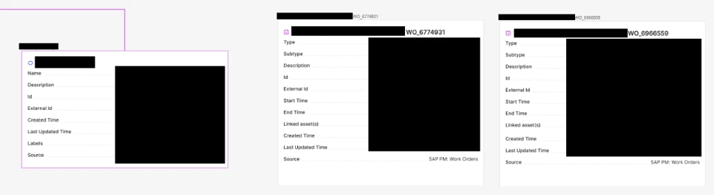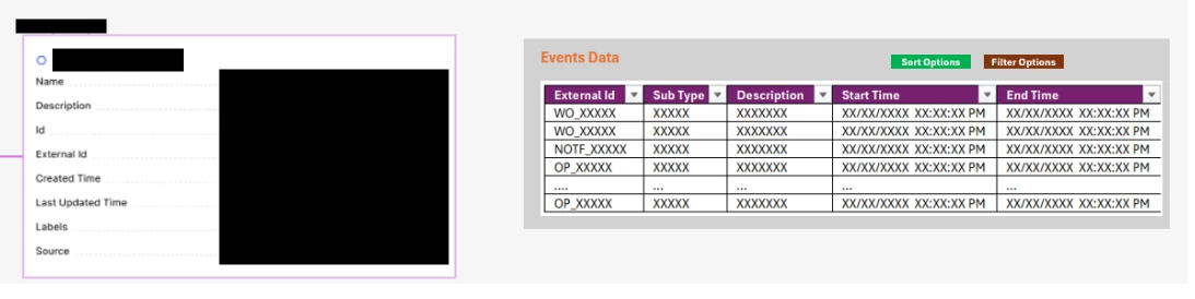 3. Add Events (Work Order, Notifications, Operations etc) contextualized with the asset where each event is a separate container/tile on the Canvas.