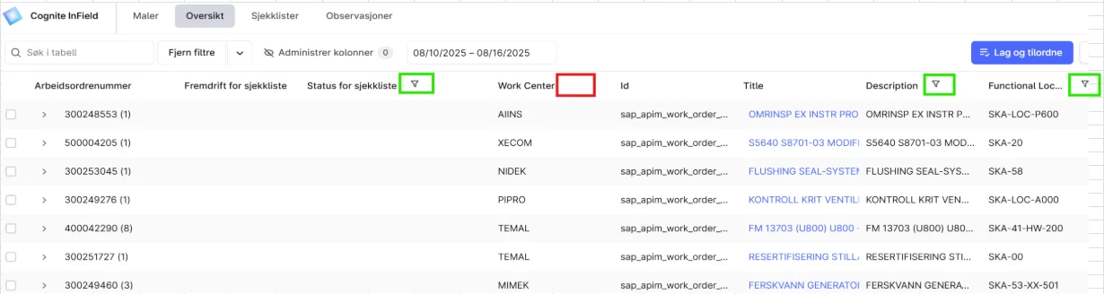 Today one can for example not filter on ones own discipline(Work Center) or Work plan (Revision) which is crucial for finding your own relevant work orders. Filters are both relevant for work order and check list tabs.