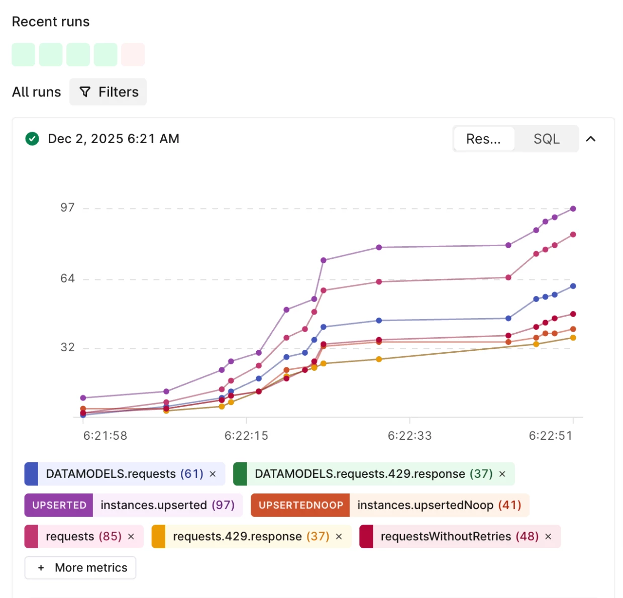 Previously, the UI only showed a few key metrics. Now, you can access everything the API tracks-from specific rate limits to granular resource updates-right from the graph.
