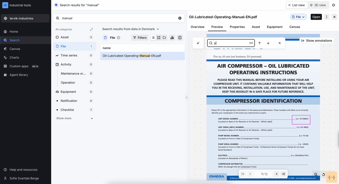 This new functionality supports searches within individual .pdf files across Asset-centric/Classic and Data Modeling files.