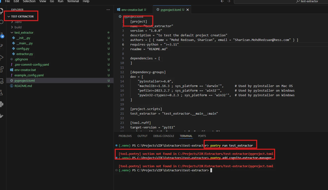 I just install and create new project using cogex init. When i tried to run using "poetry run test_extractor", it returned below error: