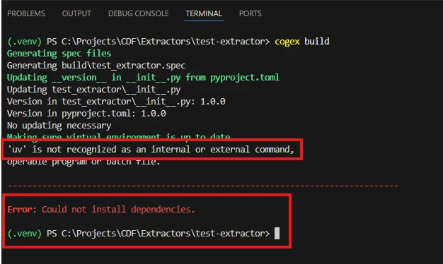 Cognite Extractor Manager (cogex) - Error on poetry run ang cogex build