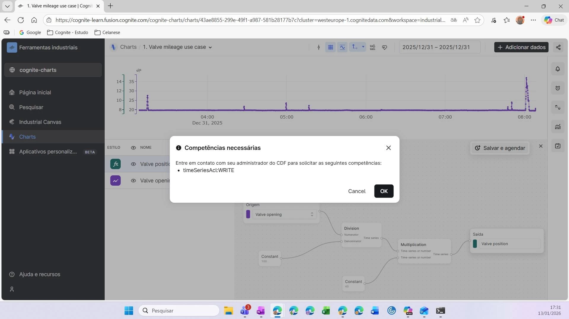 When doing the exercise “Valve mileage use case” of the Domain Expert training in CDF, this error appears (in Portuguese):
