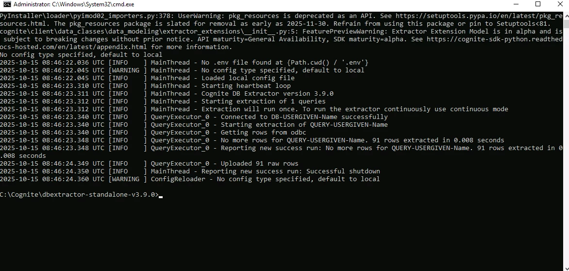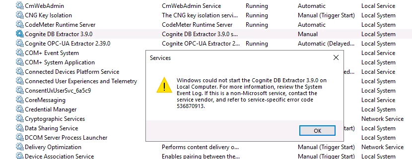 Error when start the Cognite DB Extractor 3.9.0 Services