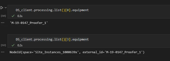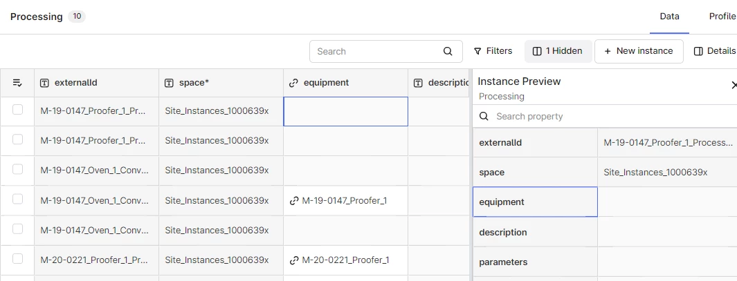 We have a DM with many direct relations. A processing is directly liked to an asset with the name of the property being ‘equipment’.
