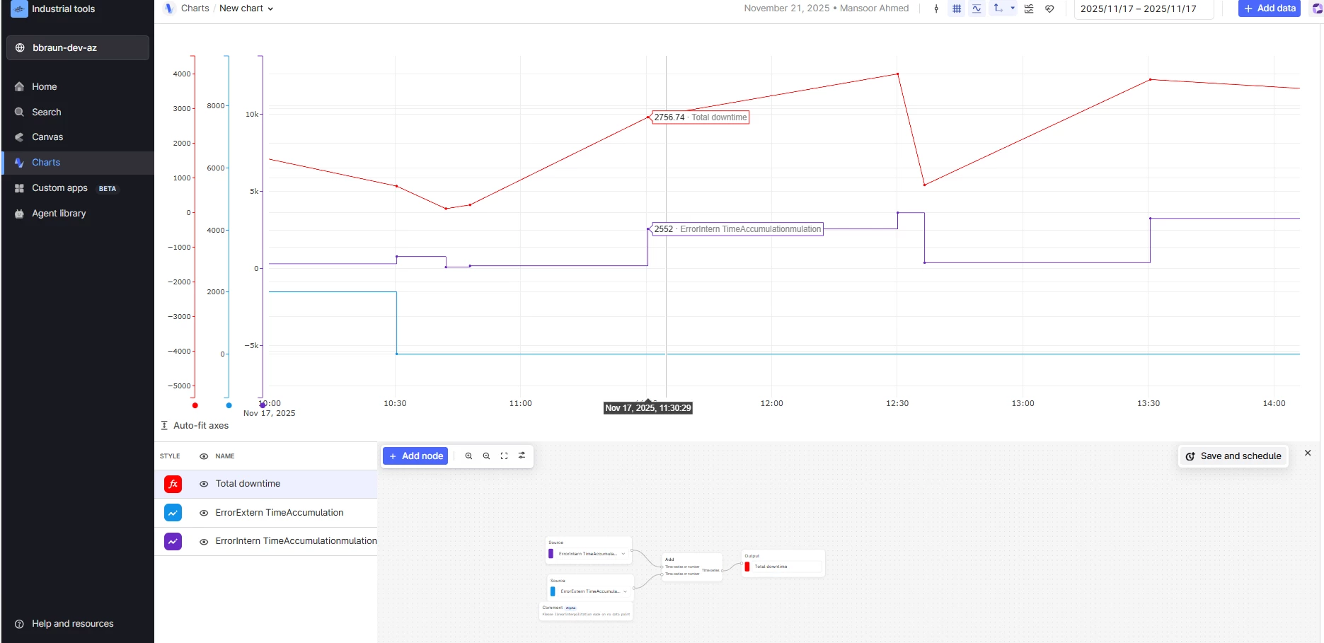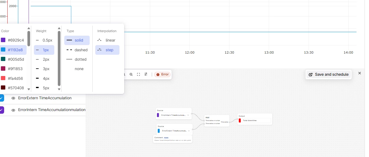 In the example below, the ‘Error Intern’ series has a value of 2252, but in ‘Total Down Time’ I’m getting 2756.64, which is incorrect—it should also be 2252.