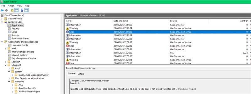 Start-Service : Failed to start service 'Cognite GAP connector 2.0.0-beta-6 (GapConnector)'.